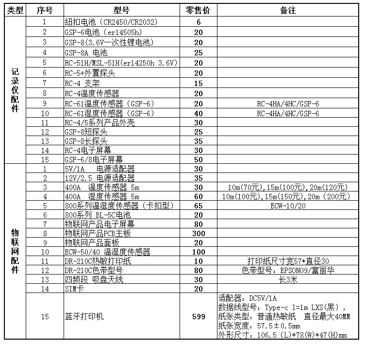 主要配件及易損件價格