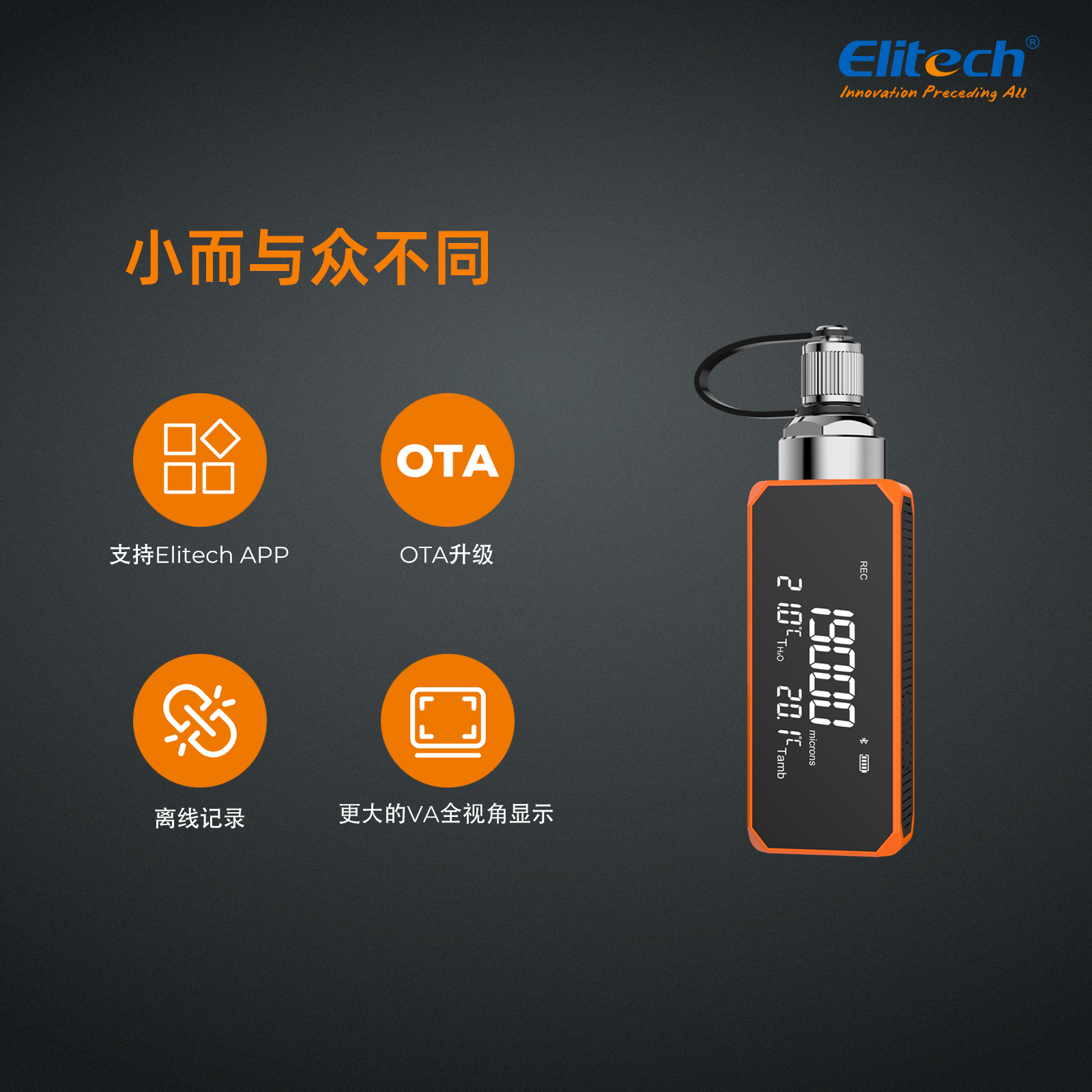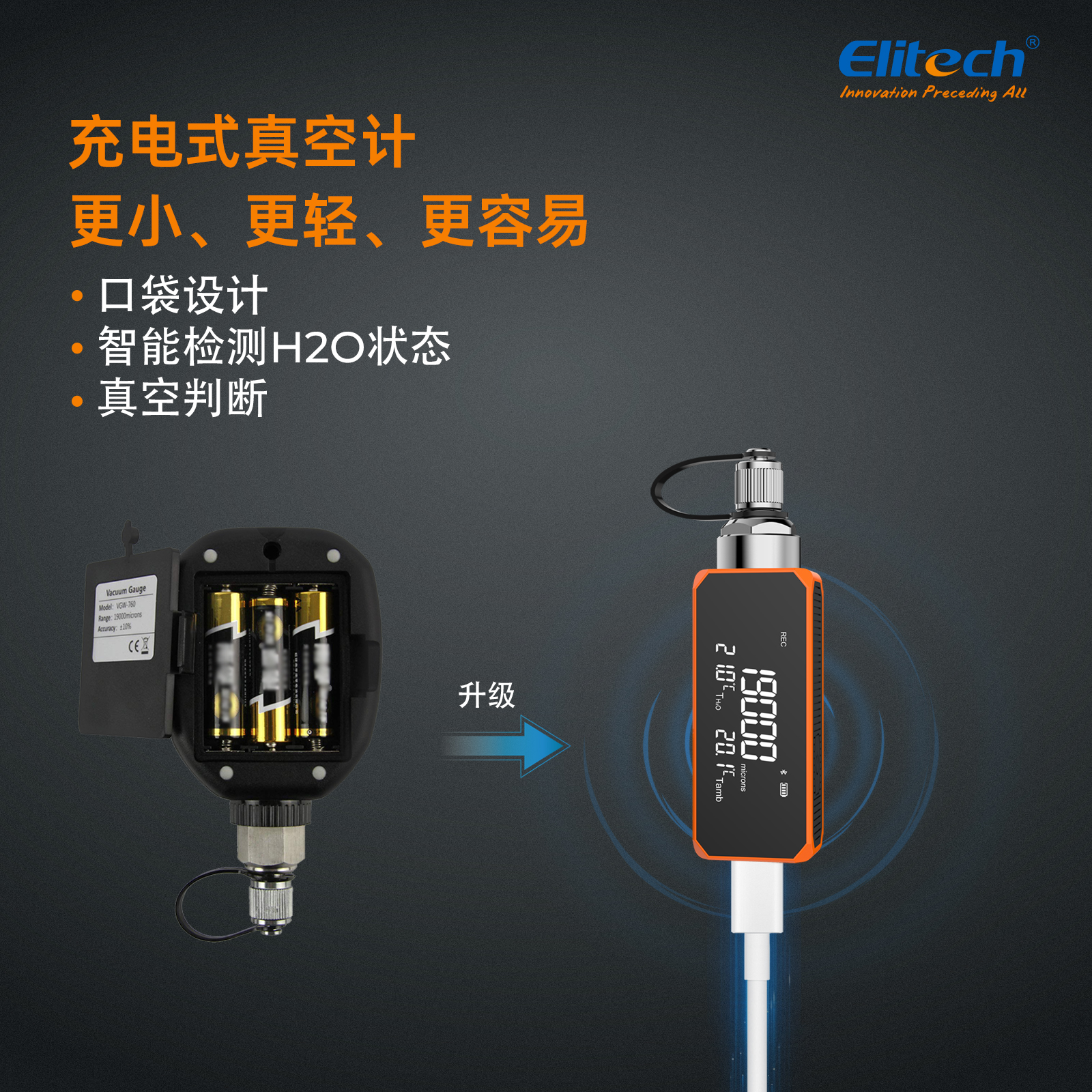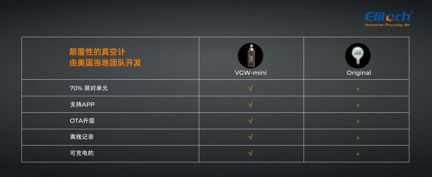 - 智能 APP 控制:“Elitech Tools”APP 遠(yuǎn)程控制您的真空計(jì),快速方便地記錄您的工作,完成您的報(bào)告并導(dǎo)出。