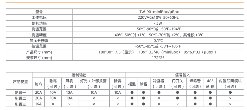 ● 三路溫度傳感器用于柜溫調節、除霜控制、冷凝器溫度監測;