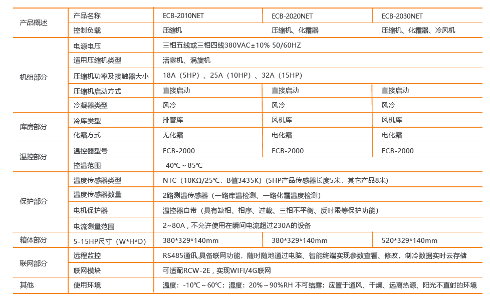 ● 具有營業和非營業兩種模式可選 ● 通過PC、手機APP對機組參數遠程查看、修改,并對溫度數據實時記錄并保存,實現冷庫遠程集中監控 ● 具有對壓縮機高壓保護、低壓保護、模塊保護、過載保護、相序保護、缺相保護、三相不平衡保護、反時限保護等多種保護功能