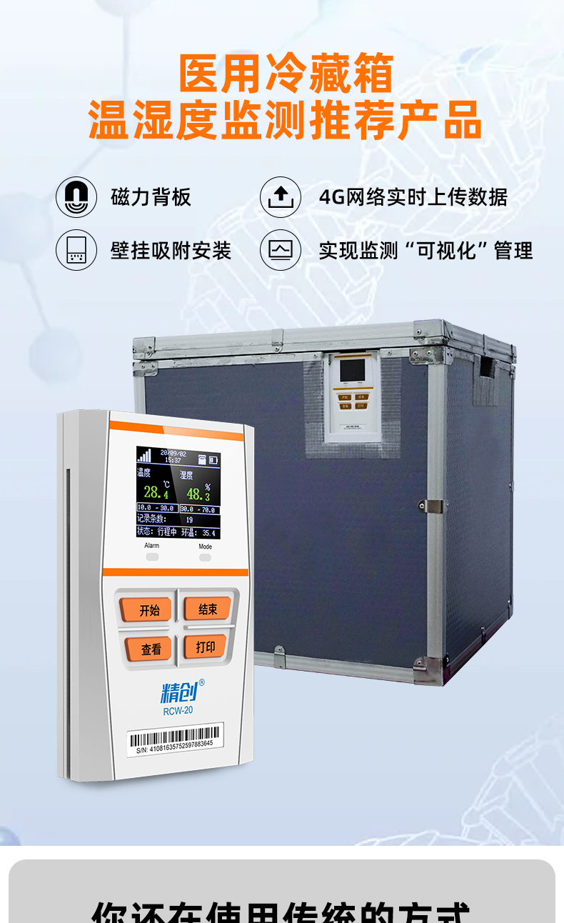 RCW-20 系列是一款配套安裝冷藏箱的物聯(lián)網(wǎng)記錄儀,具有安裝支架,可以配套安裝在冷藏箱上,使用4G 網(wǎng)絡(luò)實時上傳數(shù)據(jù),同時具有LSB+GPS 定位、現(xiàn)場藍(lán)牙打印等功能,滿足冷鏈物流操作中,現(xiàn)場交付冷鏈全過程的溫濕度數(shù)據(jù)記錄的要求。