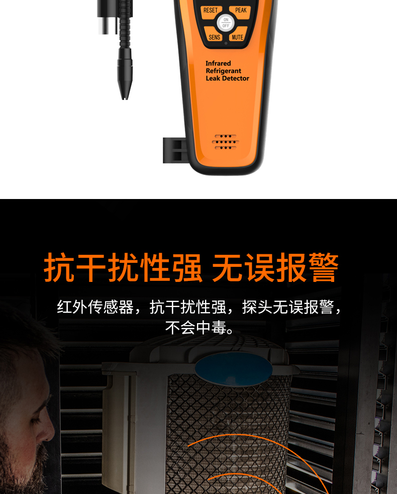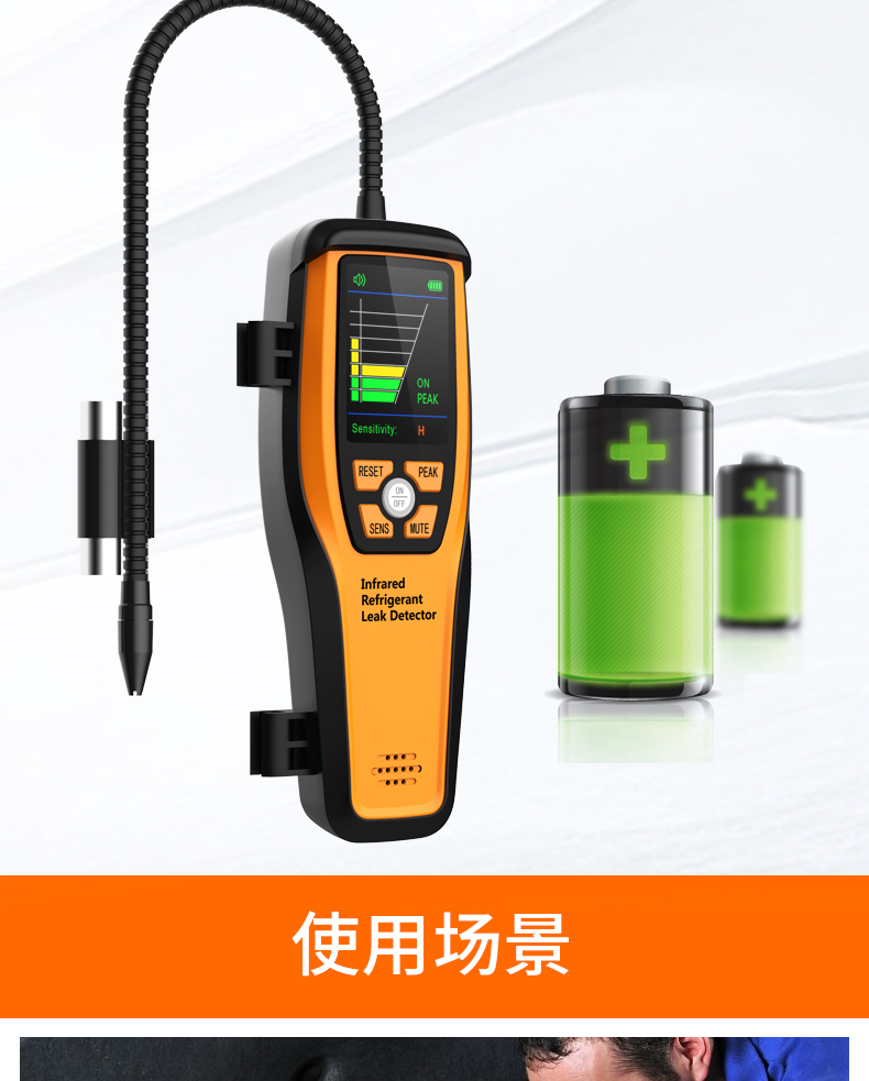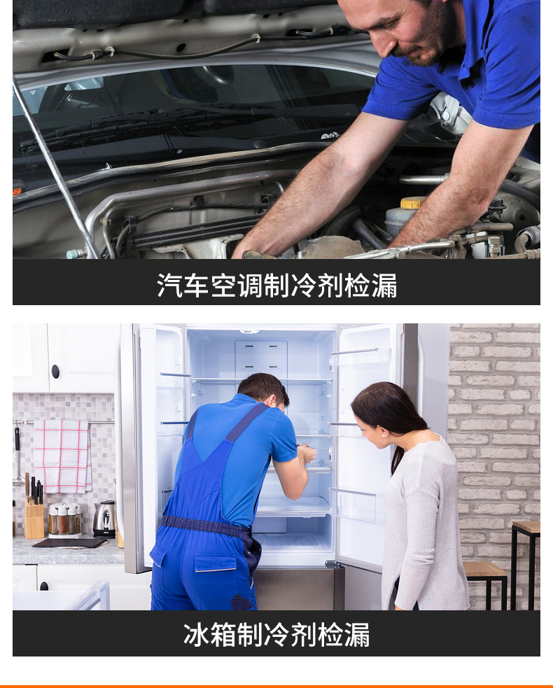 主要用于制冷設備維修行業,檢測冷凍柜、空調、冷庫等大型制冷系統冷媒有無泄漏并準確找岀泄漏點。